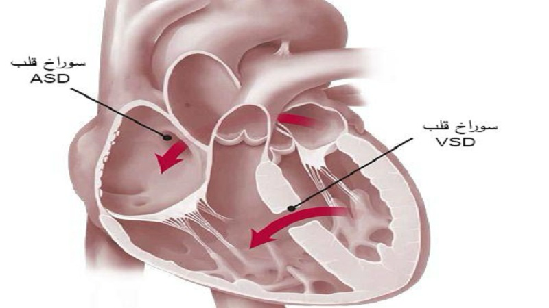 نقص دیواره بین دهلیزی (ASD): در این بیماری، یک سوراخ در دیواره بین دو محفظه بالایی قلب وجود دارد که باعث میشود خون از سمت چپ به سمت راست جریان پیدا کند. این موجب میشود قلب و ریهها بیش از حد کار کنند و در نتیجه فشار خون در ریهها افزایش یابد.